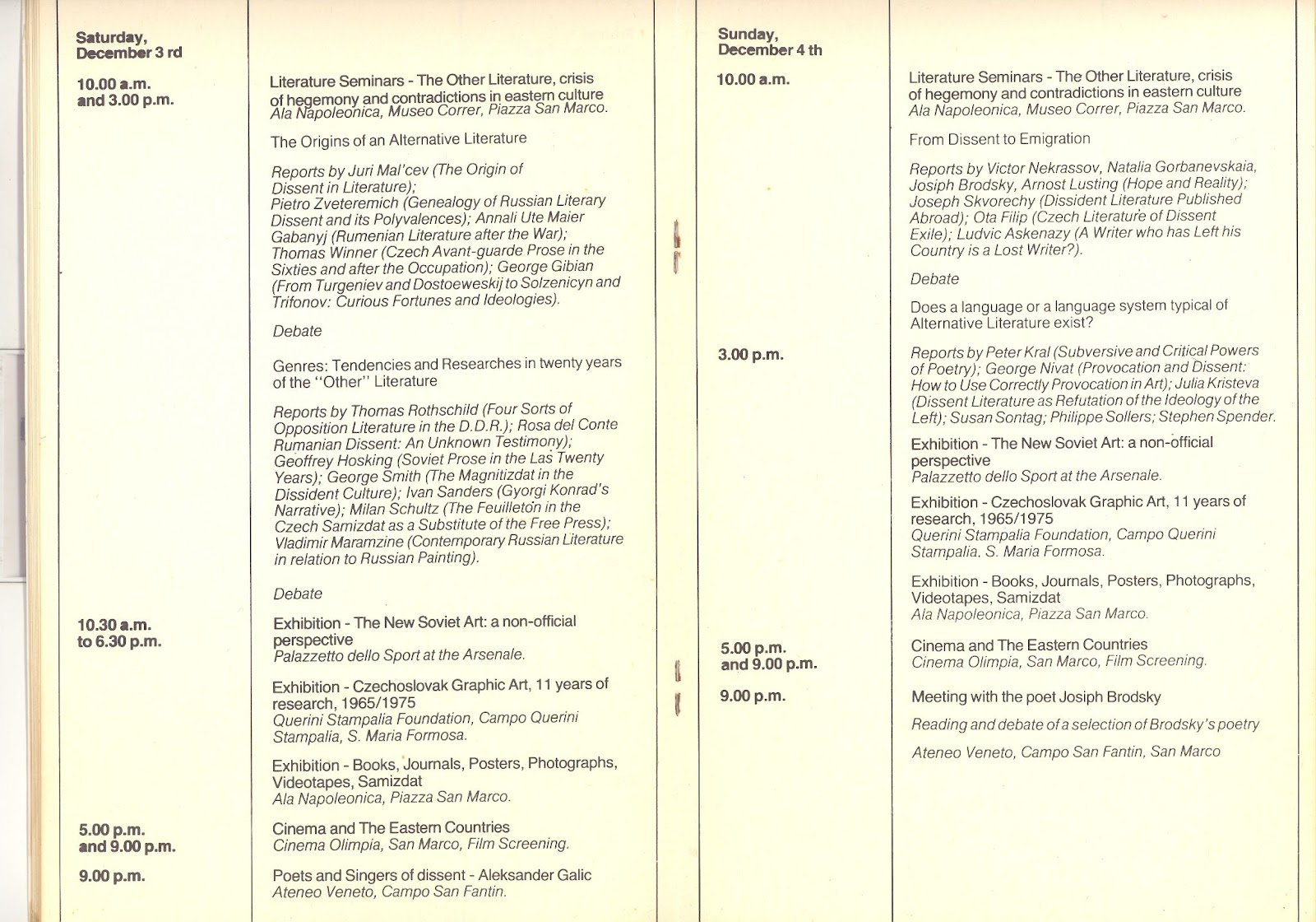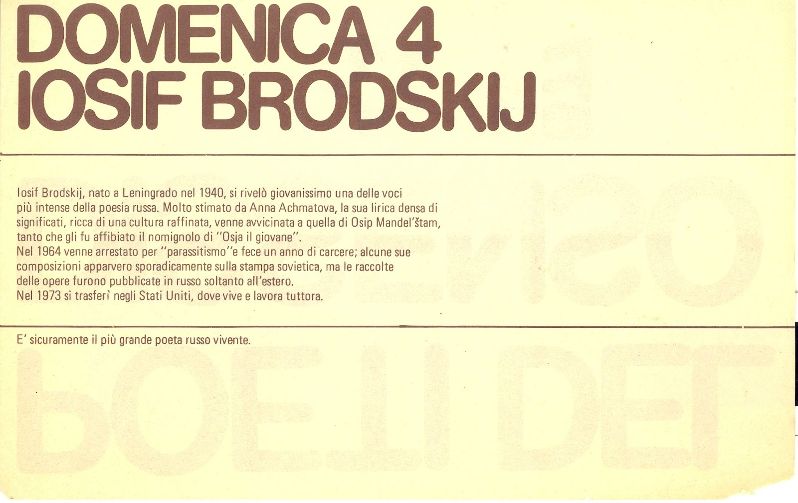 Афиши выступлений Иосифа Бродского на «Биеннале диссидентов» в Венеции, 1977 год. Из архива Наташи Шарымовой.
