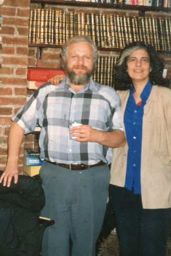 Петр Вайль и Сьюзен Сонтаг в день рождения Иосифа Бродского. Квартира Бродского, Мортон-стрит, 44. 24 мая 1986 года. Фото Романа Каплана.