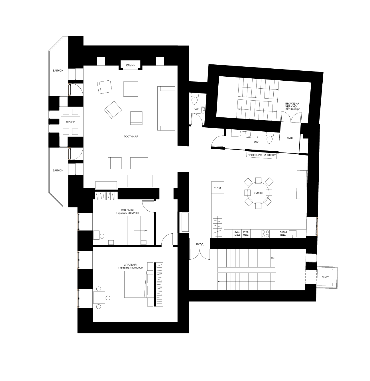 Количество комнат: 3 (две спальни, гостиная, кухня, два санузла)